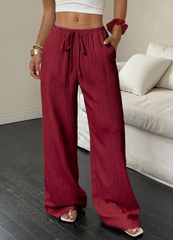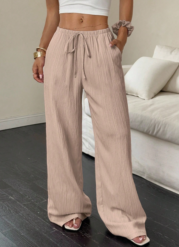Stijlvolle en comfortabele damesbroek met een effen kleur, schuine zakken en een subtiele textuur. Perfect voor een casual look, ideaal te combineren met elke outfit. Gemaakt van zacht en ademend materiaal voor dagelijks draagcomfort.